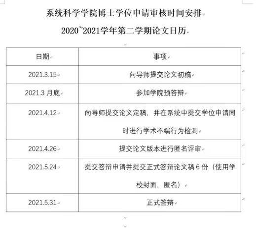 解答:学校研究生网站已公开毕业论文格式要求,详见官网说明。毕业论文字数无具体要求,详情需咨询导师。按往年要求,毕业论文查重率小于5%。毕业时学位论文审核时间安排详见如下表格。