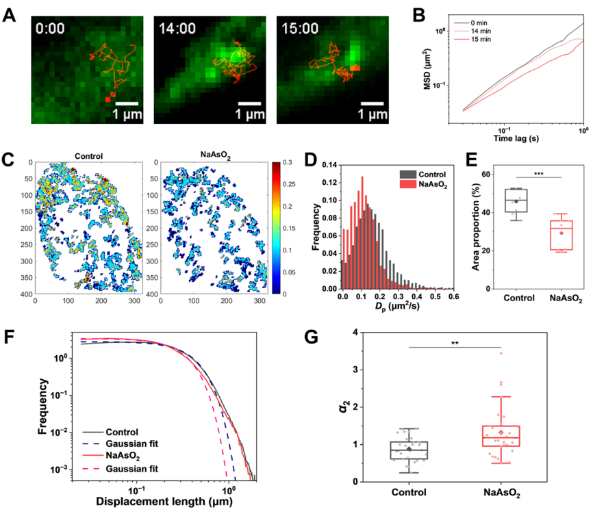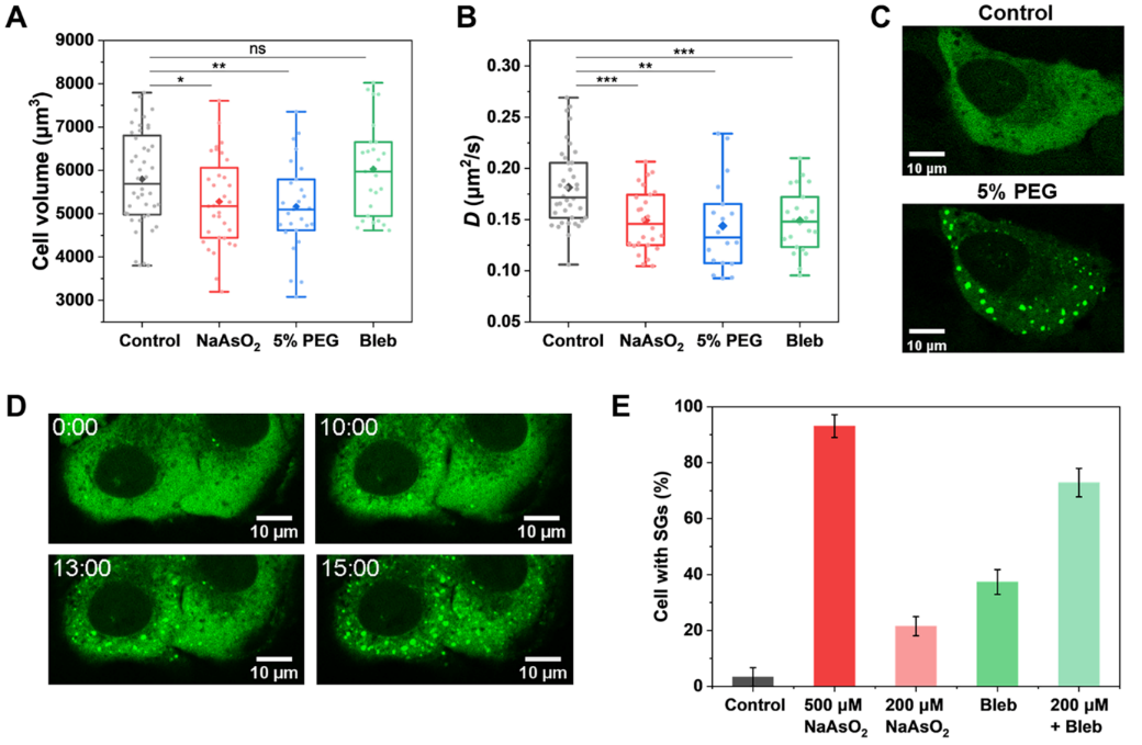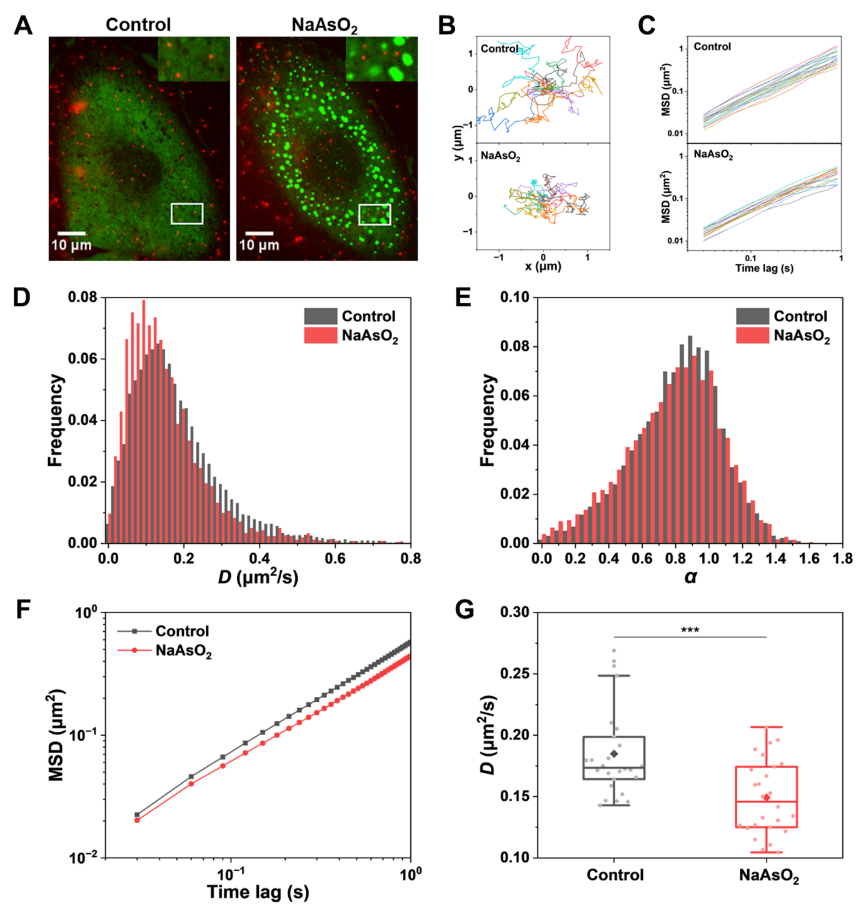 图1.细胞内应激颗粒的形成导致细胞内扩散速率下降