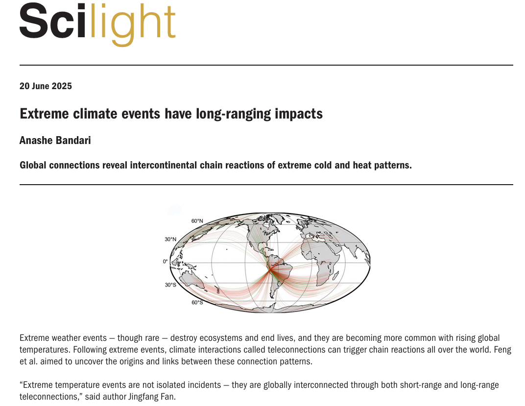该成果为理解气候系统中的跨尺度相互作用提供了全新视角,展示了系统科学方法在复杂气候问题研究中的强大应用潜力。由于其创新性与全球意义,该研究已受到国际关注,并于2025年6月17日被AIP旗下科普平台Scilight专题报道(图2,见https://doi.org/10.1063/10.0036934)。