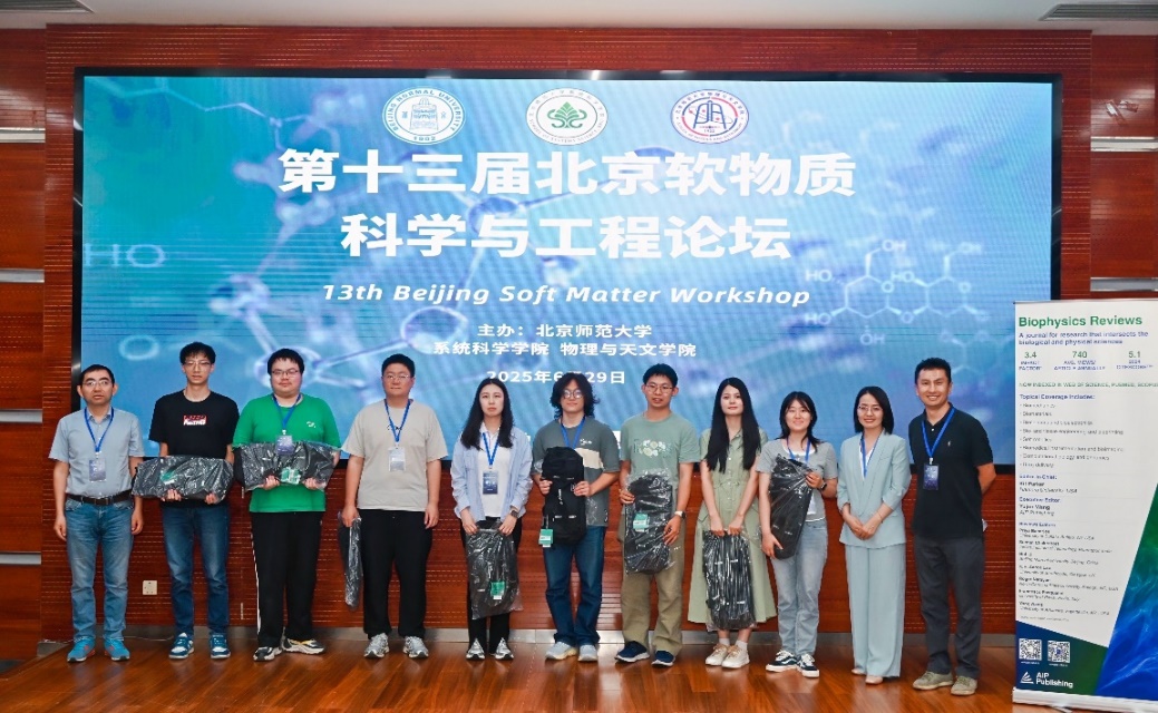 2025年6月29日,第十三届北京软物质科学与工程论坛于太阳成集团tyc151cc成功举办。本届论坛由北师大太阳集团tyc151cc和物理与天文学院共同承办,吸引了来自全国多所高校与科研机构的一百七十余名科研人员及学生参与。参会单位包括太阳成集团tyc151cc、清华大学、北京大学、中国科学技术大学、西安交通大学、南京大学、哈尔滨工业大学、北京航空航天大学、南开大学、厦门大学、华南理工大学,以及中国科学院物理研究所、过程工程研究所、力学研究所、生物物理研究所等。
