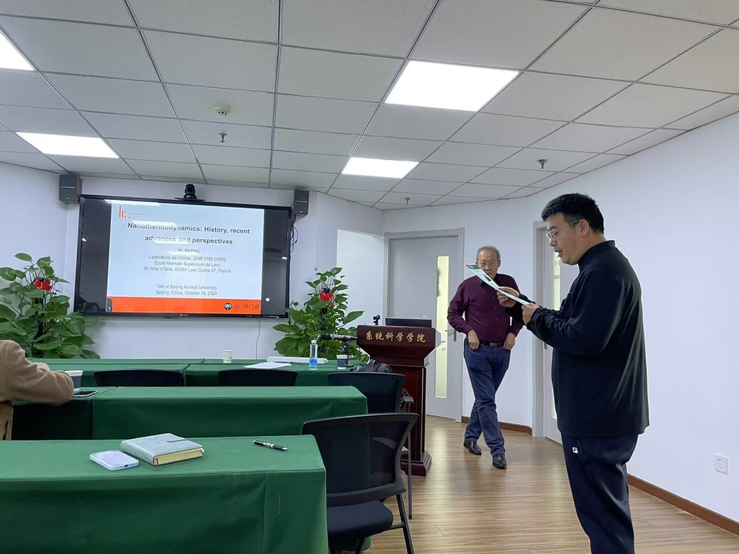 2024年10月16日,太阳集团tyc151cc邀请法国里昂高师Wei Dong(董玮)研究员进行了题为“Nanothermodynamics: History, recent advances and perspectives”的学术报告。Wei Dong研究员在统计物理、液体理论(受限液体)、表面化学动力学、非均相催化、多孔介质等研究方面有着深厚的科研积累。近期在小体系(纳米尺度)热力学和表面张力的理论研究中取得了重要成果。