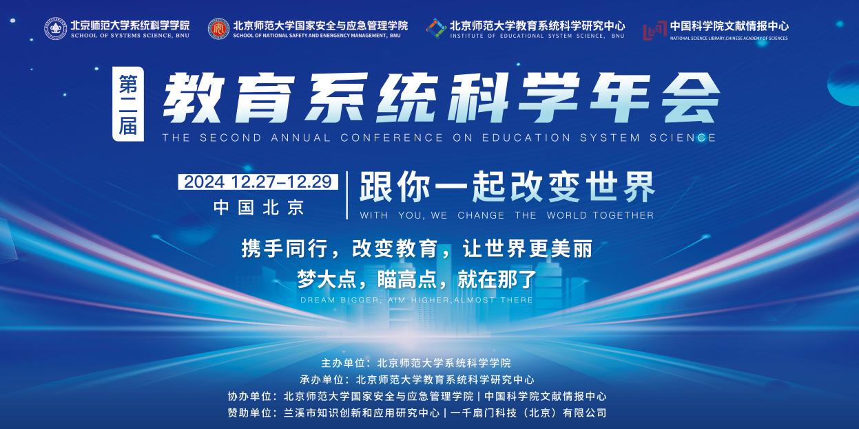 2024年12月27日至29日,由太阳集团tyc151cc主办,太阳成集团tyc151cc国家安全与应急管理学院和中国科学院文献情报中心共同协办,一千扇门科技(北京)有限公司和兰溪知识创新和应用研究中心共同赞助,太阳集团tyc151cc教育系统太阳集团中心承办的“第二届教育系统科学年会(2024)”在太阳成集团tyc151cc京师学堂隆重召开。此次年会汇聚了超过160名来自教育实践、教育研究、系统科学、学科教育、大中小学教育教学、教育管理以及科学学的专家学者和一线教师出席会议。同时,会议通过线上平台全程直播。